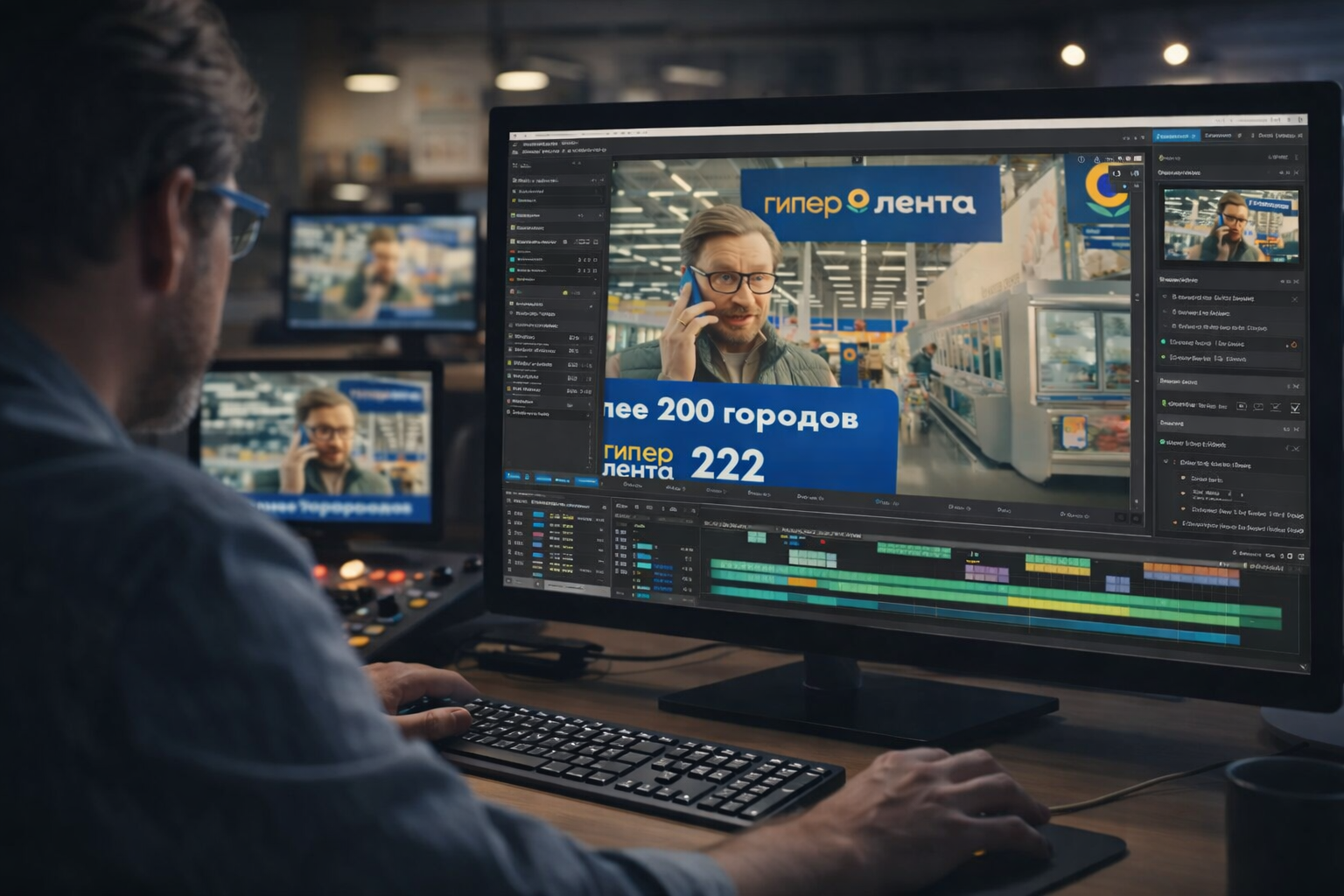 На последнем этапе выполняется цветокоррекция, настройка звука, добавление эффектов и финальная адаптация ролика под нужные площадки: соцсети, сторис, reels, сайт или рекламные экраны.